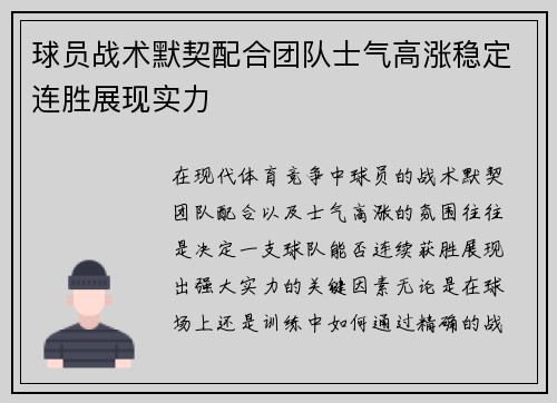 球员战术默契配合团队士气高涨稳定连胜展现实力